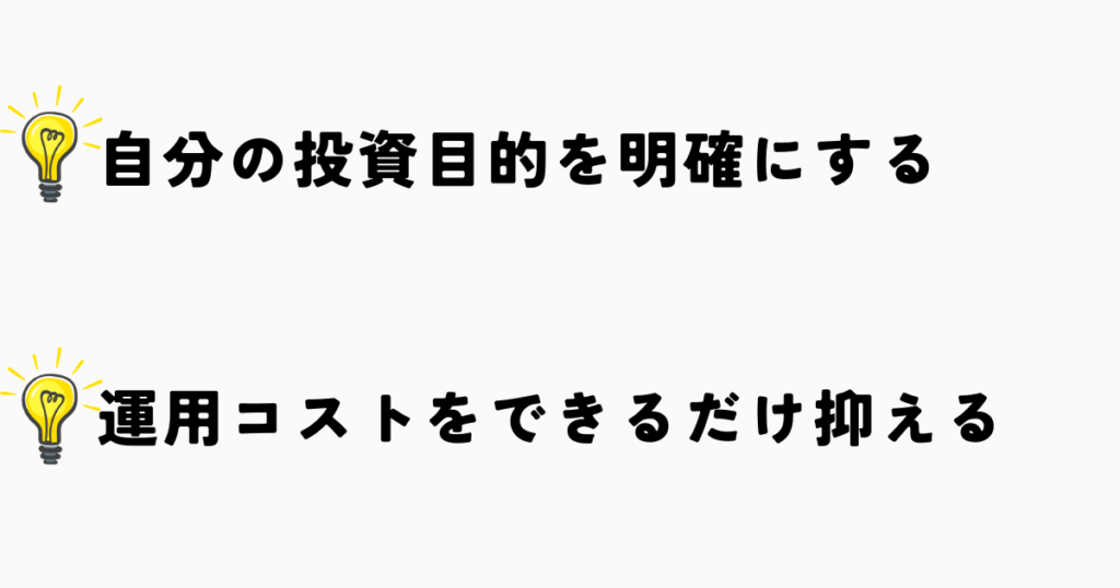 新NISAで効果的に資産を育てるためには、銘柄選びにおいて「自分の投資目的をハッキリさせること」と「運用コストをできるだけ抑えること」が大事です。
